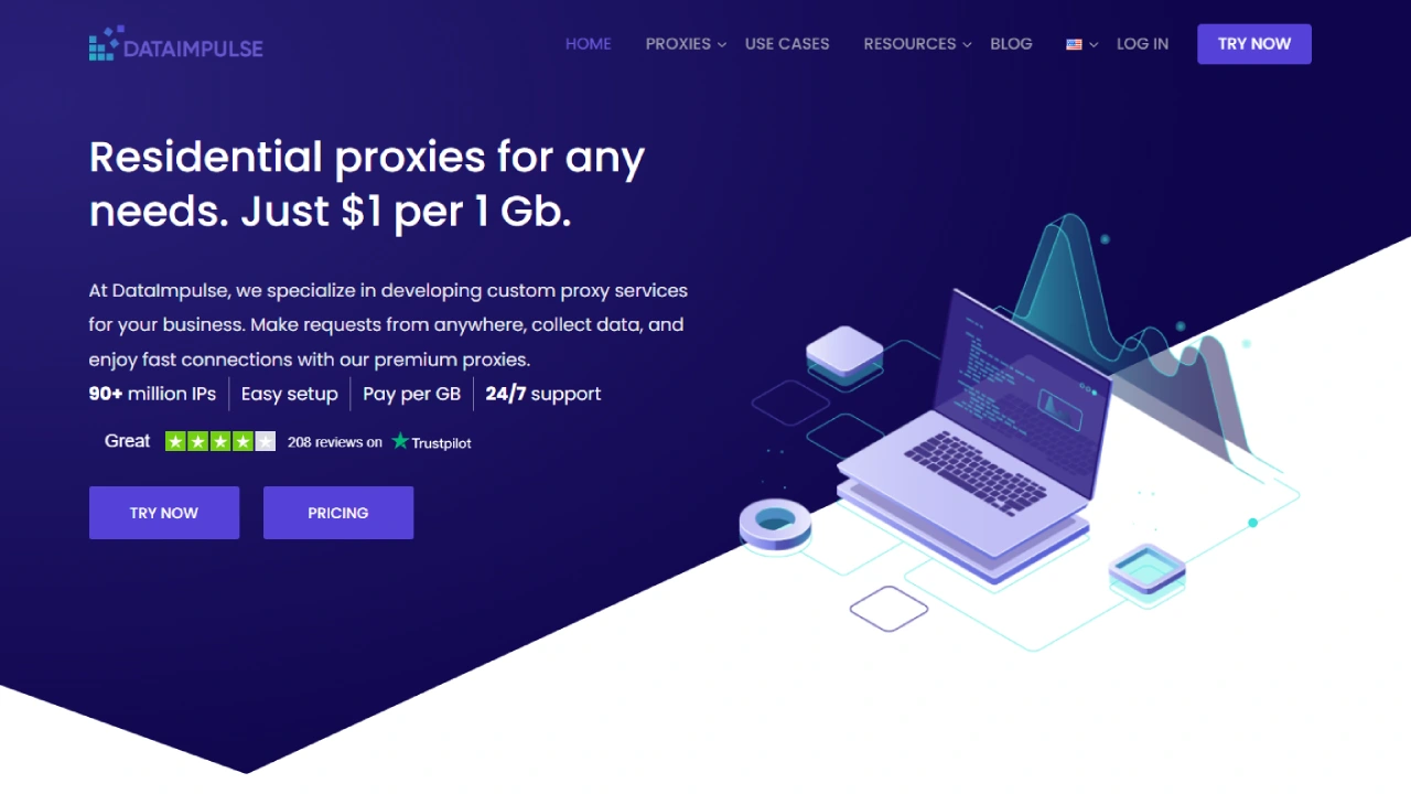 | DataImpulse | Pay-per-GB with volume tiers | HTTP(S), SOCKS5 | Rotating by default; sticky available |