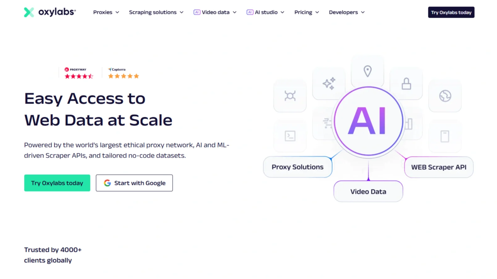 A key advantage is unlimited bandwidth and concurrent sessions, which allows for massive scaling without worrying about traffic costs. With a 99.9% uptime guarantee and a self-service dashboard, Oxylabs delivers the reliability and control that enterprises expect.
