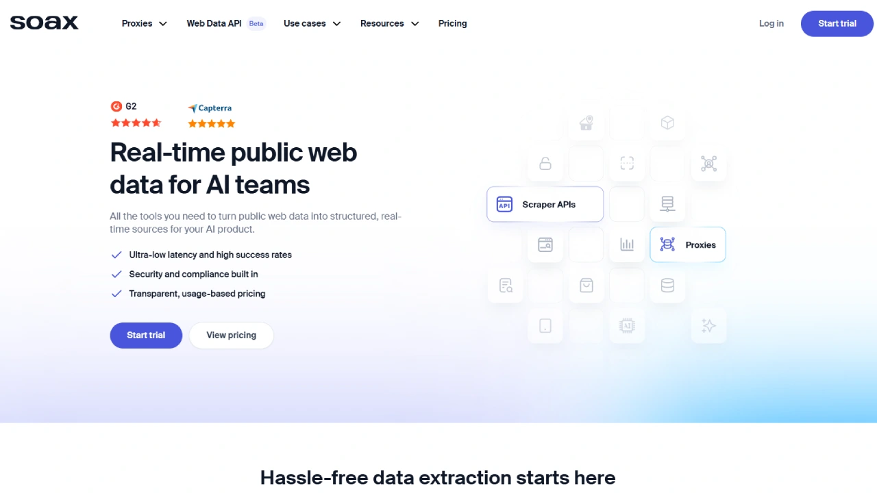 The service offers both rotating and static IP sessions, providing versatility for different projects. With a clean dashboard for managing usage and a reputation for providing high-quality, non-blacklisted IPs, SOAX is a solid choice for businesses that need both performance and precision from their datacenter proxies.