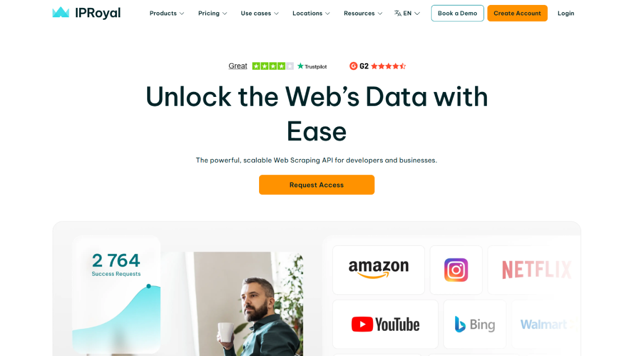 The IPRoyal Scraping API does not have public pricing plans listed on its website. It is an enterprise-grade solution where pricing is provided via a custom quote after you "Request Access" and discuss your specific needs (like target websites and volume) with their sales team.