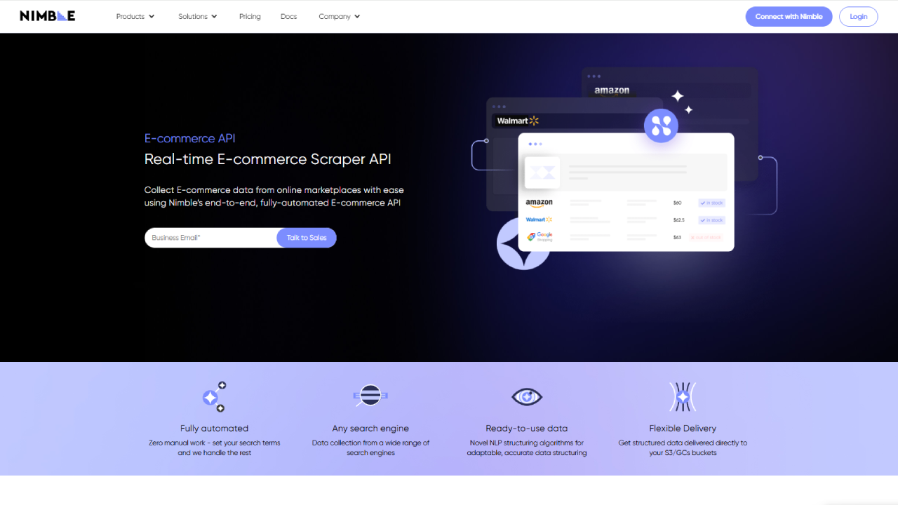 Nimble is a powerful, AI-driven scraping API built for high-stakes, enterprise-level data collection. It focuses on providing a highly reliable and scalable infrastructure that can handle billions of requests.