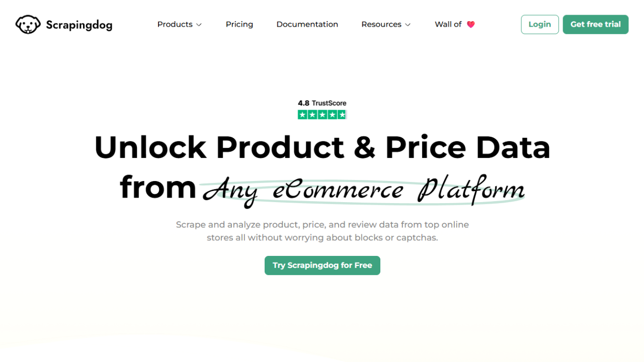 Scrapingdog is a versatile web scraping API that balances powerful features with simplicity and affordability. It provides a Headless Chrome API for scraping dynamic, JavaScript-reliant websites, as well as a standard API for faster scraping of static sites.