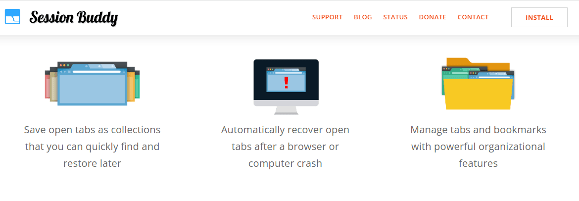 | Session Buddy | Session saving & recovery, Tab collections, Powerful search | Free | Recovering sessions after crashes |