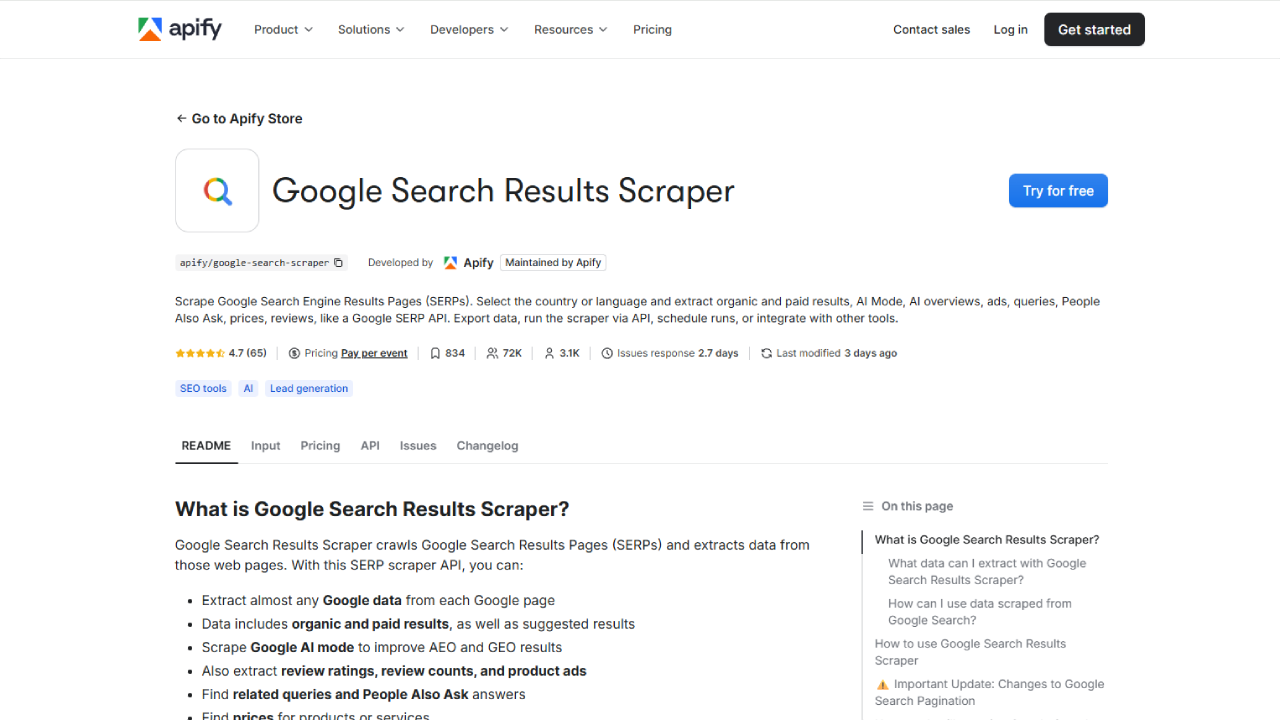 Their "Google Search Results Scraper" Actor is a powerful tool that can extract a deep set of data, including organic and paid results, AI overviews, "People Also Ask" boxes, and more.