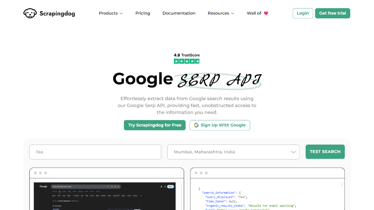 Scrapingdog has made a name for itself by offering a highly reliable and, most importantly, affordable scraping solution. It provides both a general web scraper and a dedicated Google Search API.