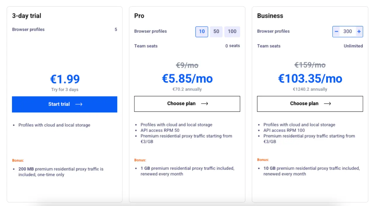 It continues to set the industry benchmark with unmatched fingerprinting technology and top-tier security, trusted by professionals and agencies worldwide. Though it comes at a higher price and lacks a free trial, it delivers exceptional stability, dual browser engines, and powerful team management tools — truly reflecting the saying, “you get what you pay for.”