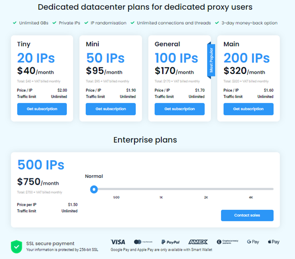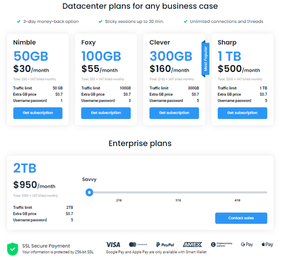 - DC proxies are scalable and provide a highly dependable connection since data centers are always “live” and fast to reply.