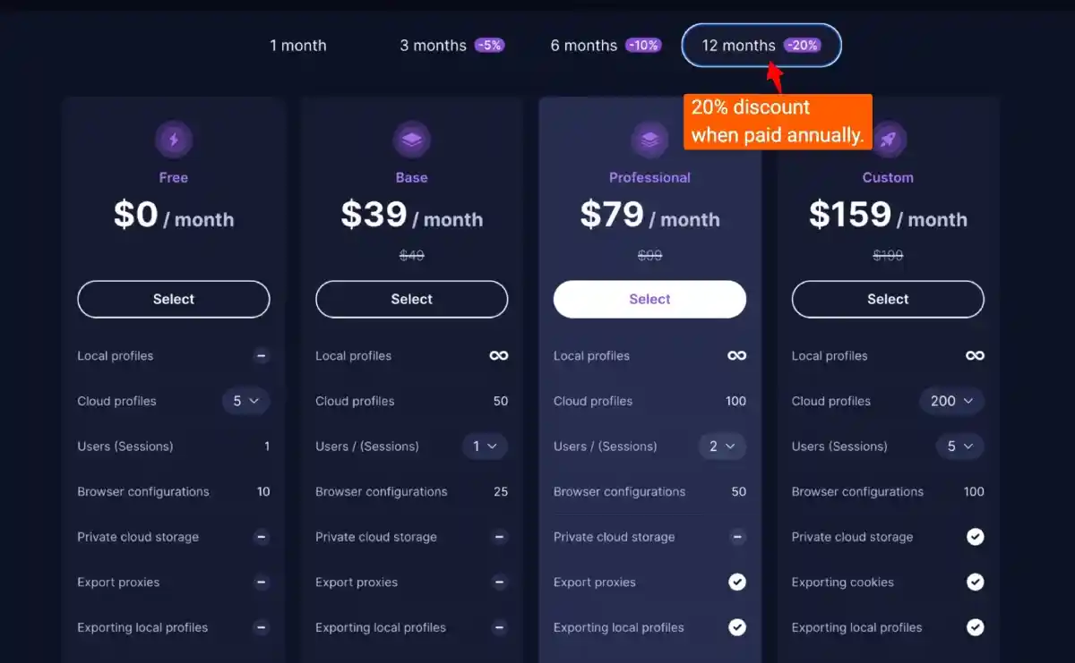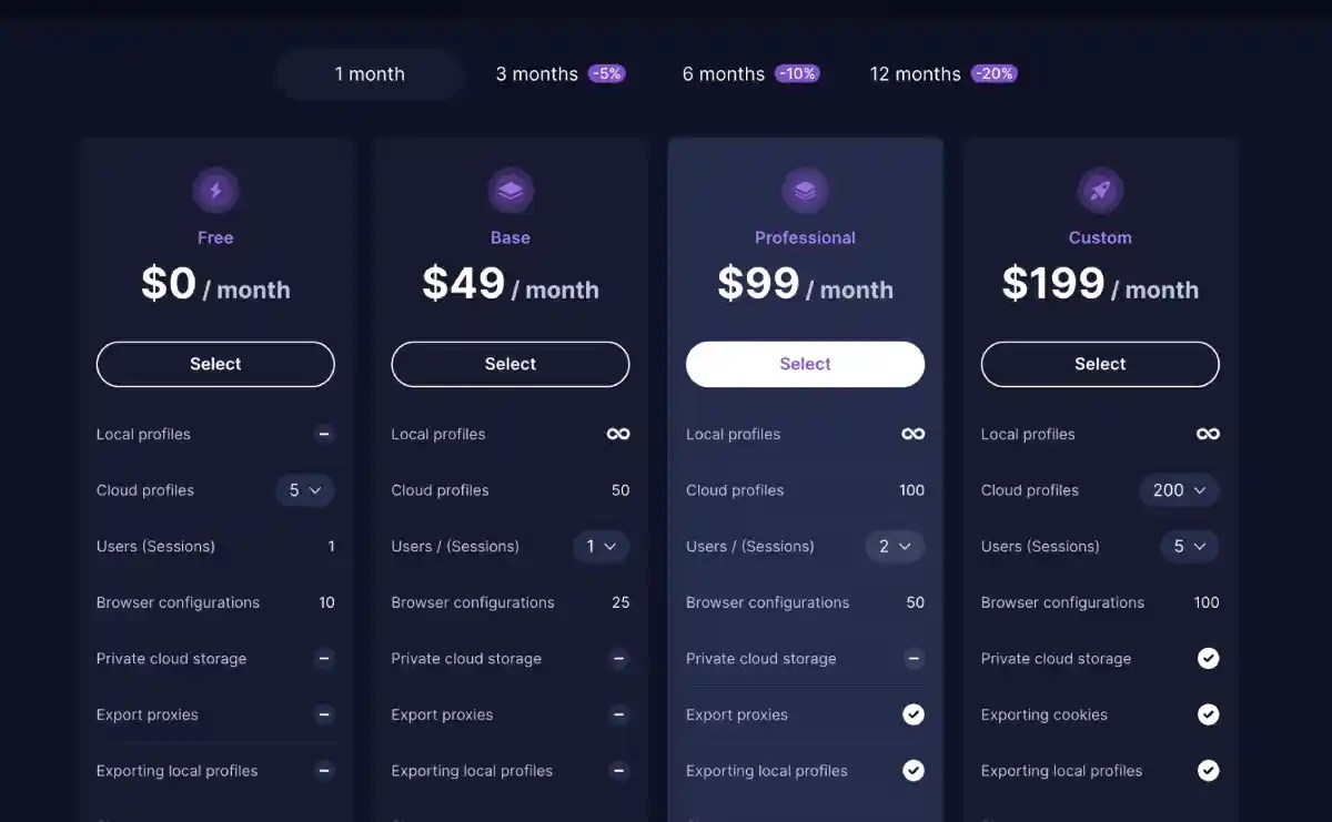 - Multilogin, while being the most expensive, justifies its pricing with advanced features and a larger number of browser profiles even in its base plan.