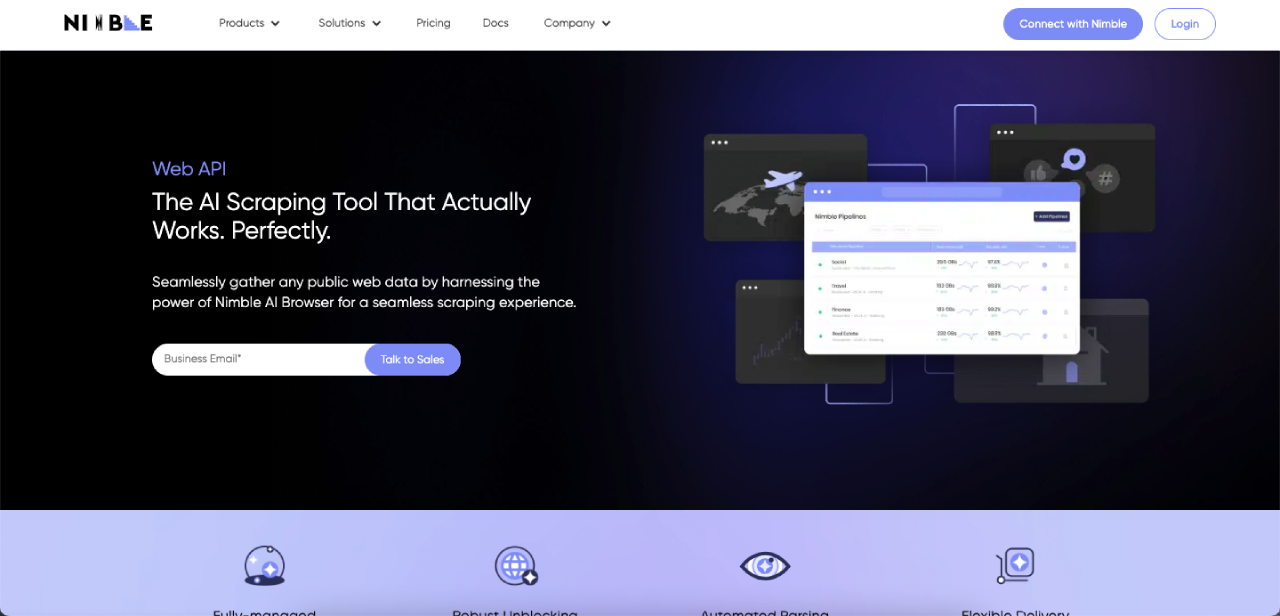 Nimble is a newer but very powerful player that offers both a high-quality residential proxy network and a flexible Web Scraping API.
